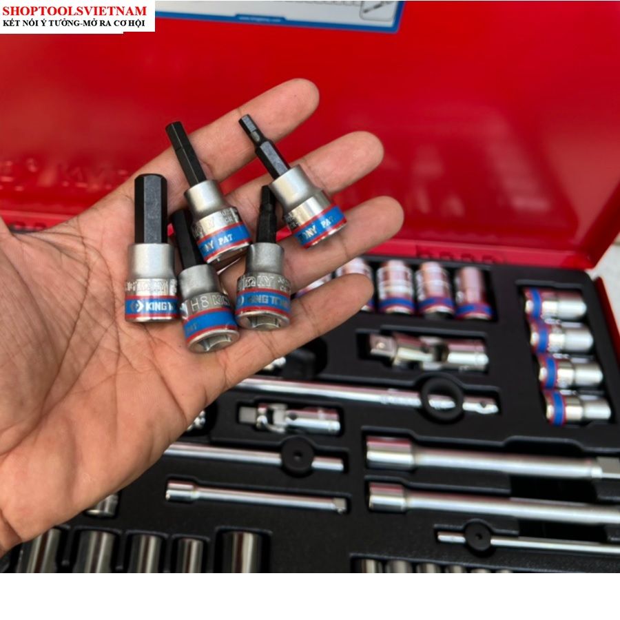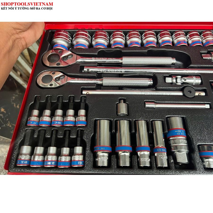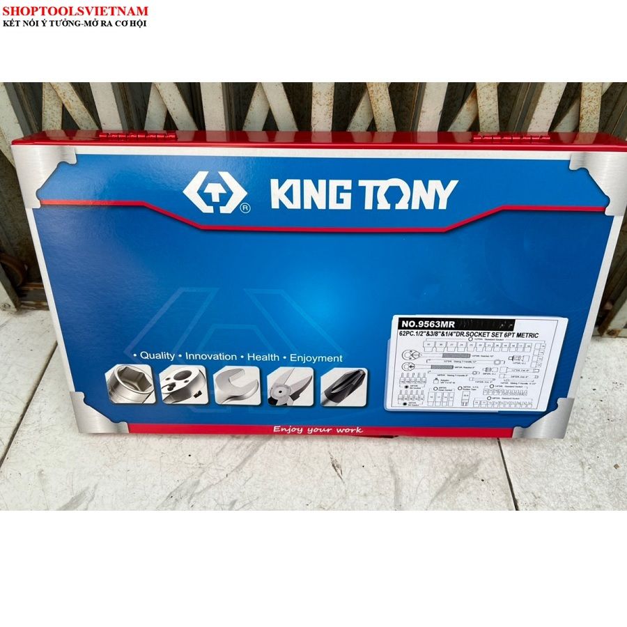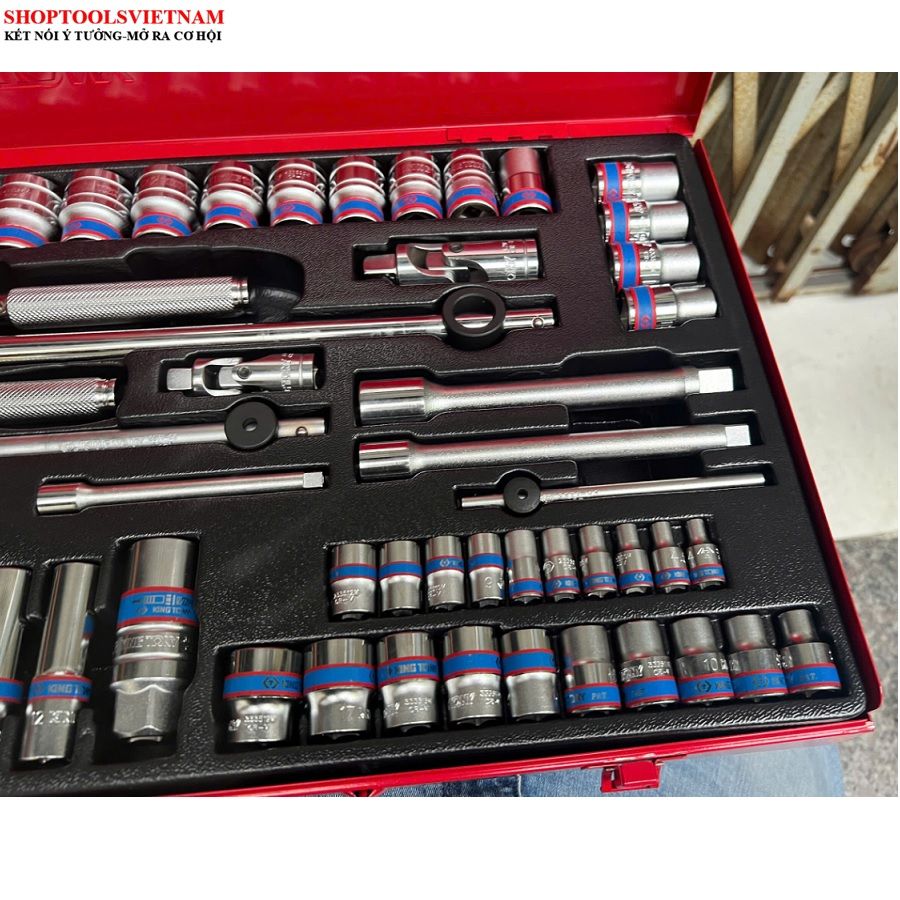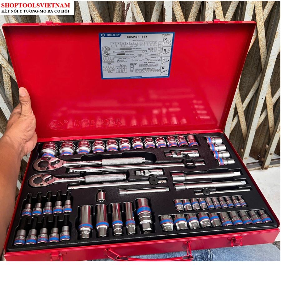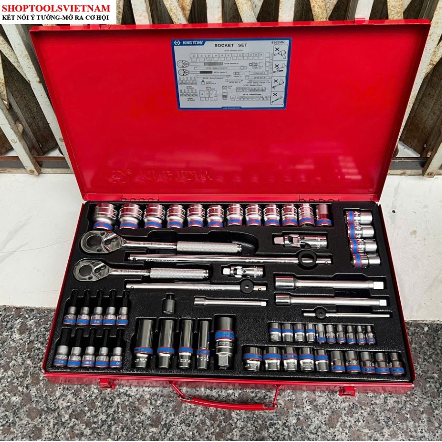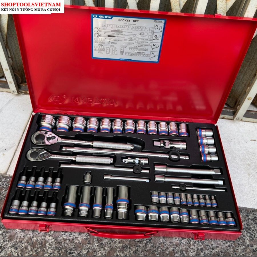 Bộ tuýp 1/4-3/8/1/2 inch 62 chi tiết hệ mét Kingtony 9563MR (62 PC. 1/4"+3/8"+1/2" DR. Socket Wrench Set)