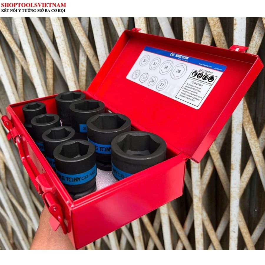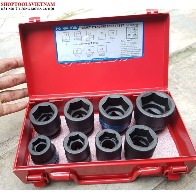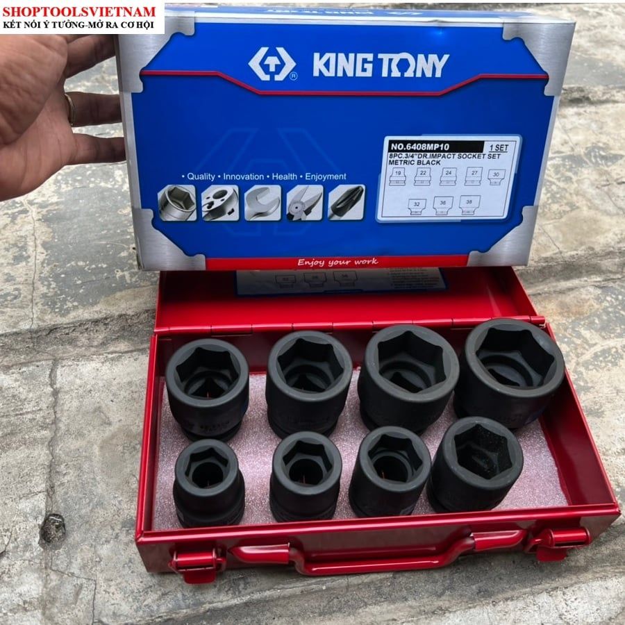 Bộ tuýp 3/4 inch 8pcs đen ngắn lục giác 19-38mm 6408MP10 Kingtony (8 PC. 3/4" DR. 6 Point Impact Socket Set)