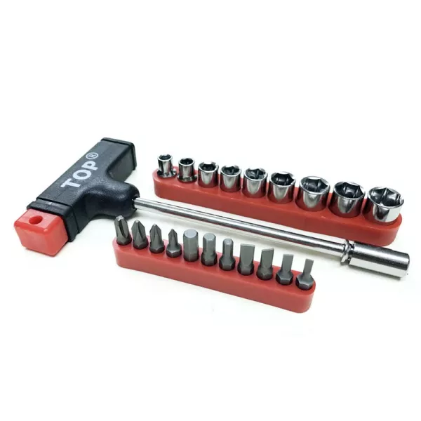 - Bộ tuýp chữ T TOP 22 món là 1 bộ tuýp đa năng cán vặn chữ T, rất tiện dụng. Cán chữ T giúp ta vặn ốc vít dễ hơn so với tu vít thông thường và không bị trượt khi tay tiết mồ hôi, hoặc tay có dầu nhớt, thích hợp để sửa các vật dụng thông thường trong gia đình