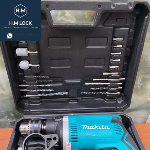 - Bộ Vali máy khoan MAKITA 16 Ly 710W có đầy đủ 3 chức năng, khoan búa, khoan sắt, vừa khoan vừa búa, đảo chiều, điều chỉnh tốc độ.