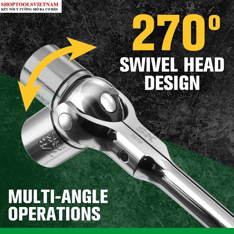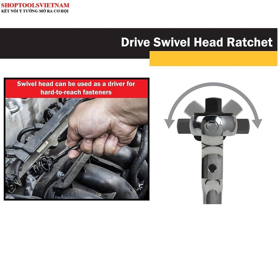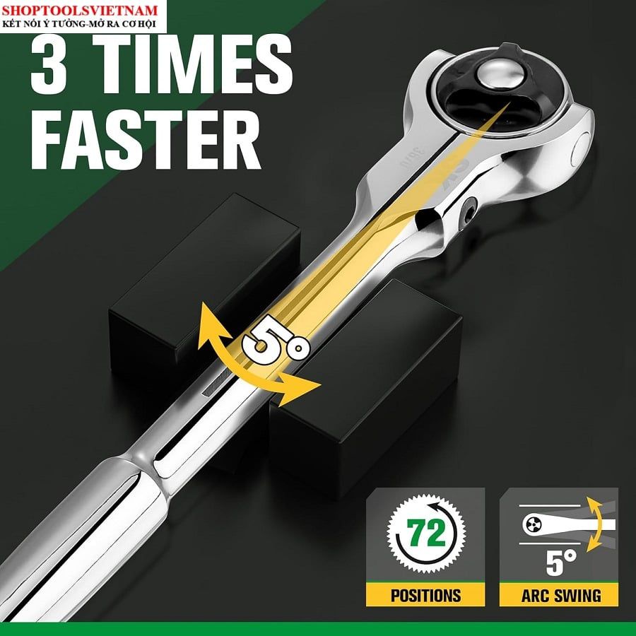 Cần Siết Tự Động 1/2" xoay 270 độ (72 răng) KINGTONY 4752-12G (1/2" DR. 72 Teeth Swivel head Reversible Quick Release Ra