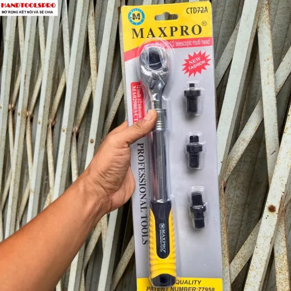 Bộ Cần Siết Tự Động 1/2,3/8,1/4 inch 72 Răng Cao Cấp Cán Có Tăng Đưa 445mm MAXPRO CTD72A