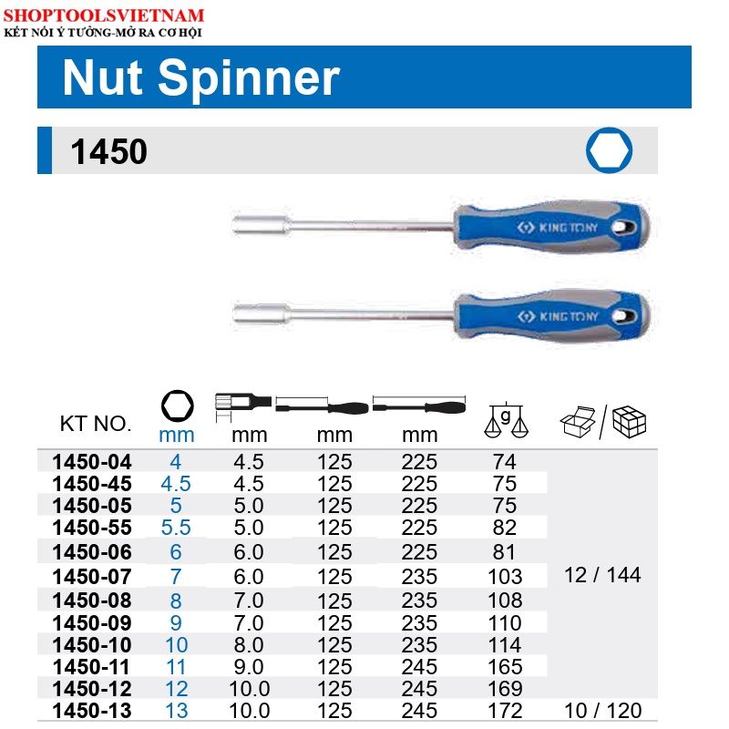 Cán vít vặn ốc đầu lục giác đủ size từ 5.5-13mm KINGTONY 1450-45-1450-13