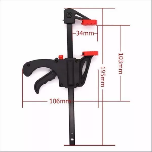 Eto bóp tay cỡ với cơ chế bóp nhanh để xiết dùng để kẹp nhanh tấm vật liệu như tấm gỗ, khuôn đúc epoxy, cố định tạm thời khi lắp ráp rất tiện dụng, nhanh chóng. Chất liệu: hợp kim nhôm, sơn đen tĩnh điện. Hai đầu kẹp của cảo được chế tạo bằng nhựa cứng, chịu lực tốt. Phù hợp dùng để kẹp các tấm vật liệu, khuôn đúc.