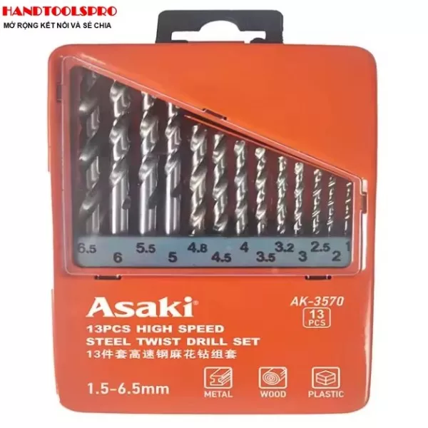 Bộ mũi khoan INOX làm từ thép HSS 13-19-25pc 1-13mm ASAKI AK-3572 AK-3571 AK-3570