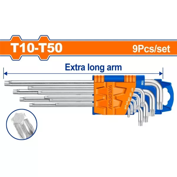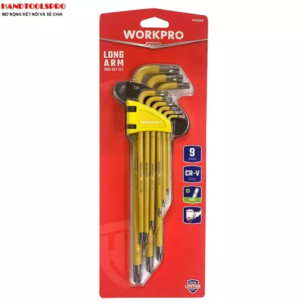 Bộ lục giác đầu sao có lỗ 9 chi tiết T10-T50 WORKPRO WP222008 (MÀU VÀNG)
