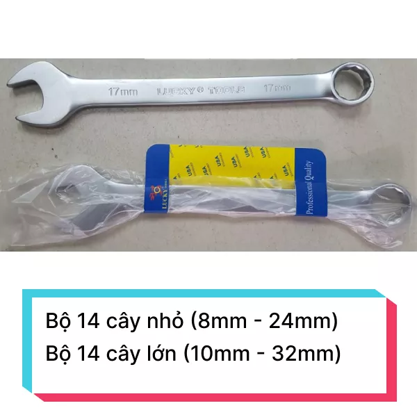 Cờ Lê Vòng miệng Lucky bộ 14 cây nhỏ (8mm - 24mm), 14 cây lớn (8mm - 32mm)