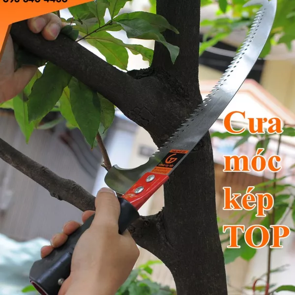 Cưa móc kép TOP được làm từ thép SK5 với độ bền và sắc bén cao. Cưa được thiết kế dạng đầu móc kép với đuôi cán cỗ lỗ, có thể gắn thêm cây nối dài. Ngoài dùng để cưa gỗ, cắt cành cây thì chúng ta còn có thể sử dụng để cắt một số cành nhỏ khác bằng hai đầu móc kép.