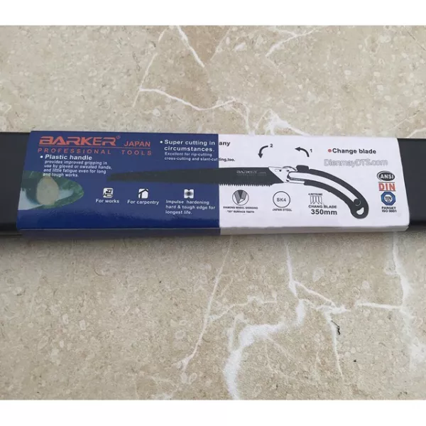 - Để đáp ứng những mong muốn đó, chúng tôi xin giới thiệu đến người dùng một loại cưa chuyên cưa gỗ, cưa cây. Đó là cưa gỗ, cưa cành cầm tay 350mm Barker, với thiết kế gọn, có bao nhựa đựng, thích hợp để mang theo bên mình khi phải đi ra vườn, hay leo lên cao.