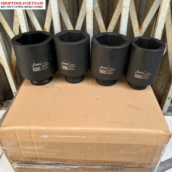 Đầu tuýp Đen Dài 3/4″ dài 120mm lục giác từ size 22- 70mm THÉP CR-MO SANTA IMX222 (6 Point Metric Deep Impact Socket)