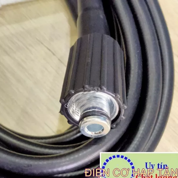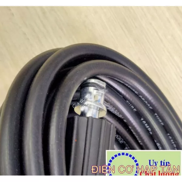 - Dây xịt cao áp lõi thép màu đen răng 22mm có chất liệu nhựa, bố, kim loại chịu lực, ba lớp nhựa PU dẻo dai, bền bỉ chịu được áp lực nước tốt, hai đầu gia cố kim loại chịu lực và loại dây chịu được áp lực cao.