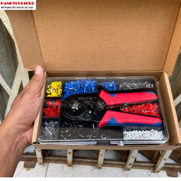 Kìm bấm cos vuông HSC8 6-4A tự điều chỉnh,1250 đầu cos đủ loại cos ống tròn cos pin