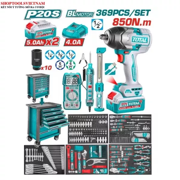 Tủ đồ nghề 7 ngăn 369 chi tiết TOTAL THPTCS83692 - Máy siết bu lông 850Nm & Phụ kiện chuyên dụng