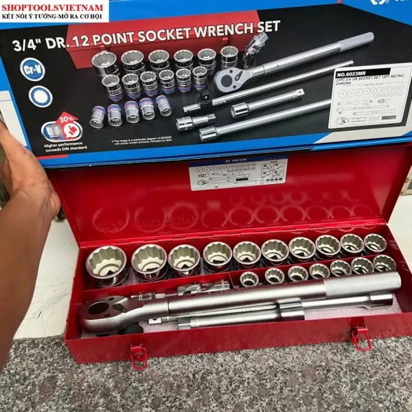 bộ tuýp 12 CẠNH CAO CẤP 23 chi tiết hệ mét 3/4" 21-50mm Kingtony 6023MR (23 PC. 3/4" DR. 12 Point Socket Wrench Set)