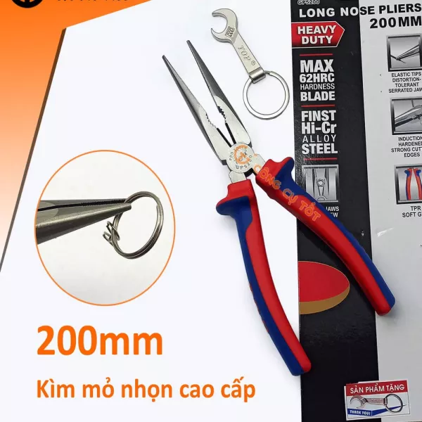 Kìm mỏ nhọn cao cấp TopGold 200mm lưỡi thép giàu Crôm tôi cao tần độ cứng HRC62