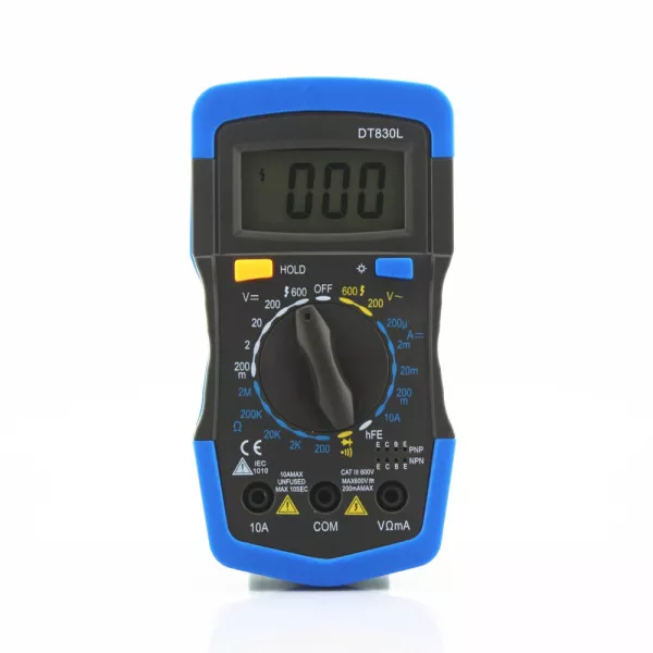Đồng Hồ Vạn Năng Digital Multimeter DT830L là loại đồng hồ vạn năng điện tử sử dụng các linh kiện điện tử chủ động, các kết quả của phép đo được hiển thị trên một màn hình tinh thể lỏng có độ tương phản cao. Màn hình đồng hồ còn được trang bị đèn chiếu sáng màn hình giúp cho việc đọc kết quả dưới điều kiện thiếu ánh sáng.