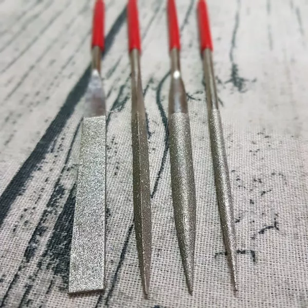 + Dũa tròn, dũa tròn hơi dẹp, dũa vuông đầu nhọn, dũa tam giác bề ngang rộng 3-4 mm