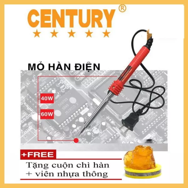 Mỏ Hàn Chì, Mỏ Hàn Thiếc 40W, 60W CENTURY - Tặng Kèm 1 Cuộn Thiếc Và 1 Hộp Nhựa Thông