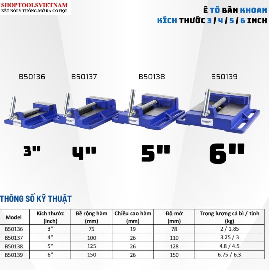 Ê tô bàn khoan có 4 size từ 75mm-150mm Brosco B50136 B50137 B50138 B50139