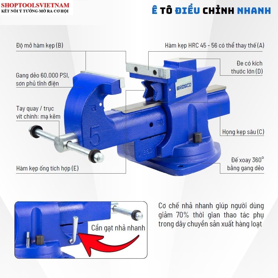 Êtô đa năng HẠNG NẶNG 4-5-6 inch xoay 360 độ điều chỉnh nhanh BROSCO B50135-B50134-B50133 (HEAVY QUICK RELEASED BENCH V