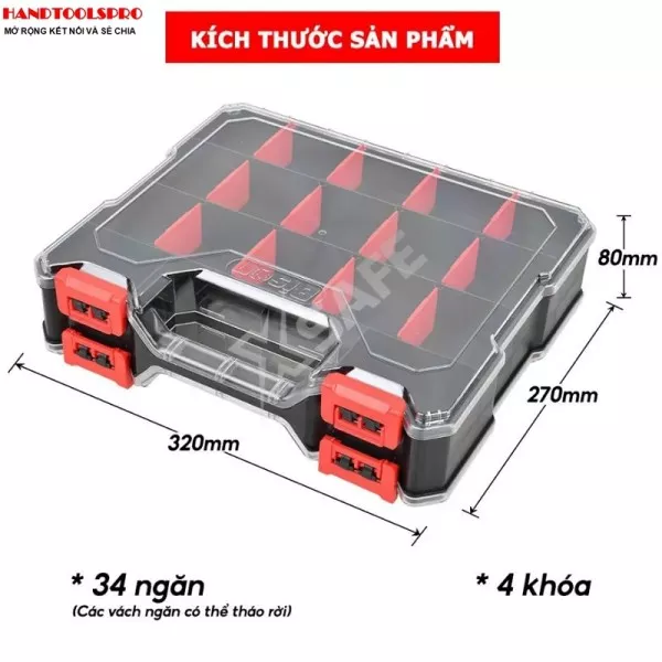Hôp nhựa đựng linh kiện 2 mặt cao cấp tối đa 34 ngăn 31.5x27.3x8.2cm BISON BS011012