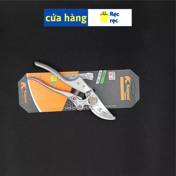 Kéo cắt cành Kapusi Nhật thép SK-5 siêu bén dùng để cắt tỉa hoa, nhánh hoa, cành, lá và cuốn trái. Kéo được tích hợp 1 lò xo giúp người dùng dễ thao tác, cán kéo bằng được sơn tĩnh điện có bao nhám bên ngoài, chốt khóa tự động bật mở tiện tích khi sử dụng. Thiết kế đẹp, hoàn thiện tinh xảo.