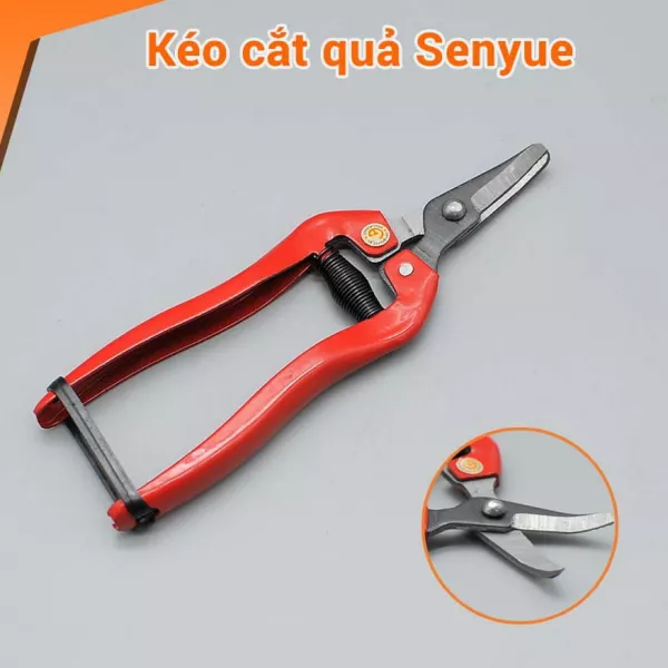 Kéo cắt quả Senyue được làm từ thép Carbon xử lý ở nhiệt độ cao với lưỡi kéo cong thiết kế đặc biệt, sắc bén giúp công việc thu hoạch hoa quả trở nên dễ dàng hơn. Ngày nay khi công việc thu hoạch hoa, trái cây đòi hỏi nâng suất lao động cao đi kèm tính thẩm mỹ của vết cắt hoa quả sau khi thu hoạch cũng phải có tính thẩm mỹ cao. Kéo thu hoạch hoa quả mũi cong Senyue giúp cho người dân có thể giải quyết vấn đề trên một cách dễ dàng với giá cả một chiếc kéo thì vô cùng phải chăng.