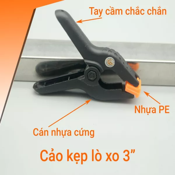 Cảo kẹp lò xo là một trong những dụng cụ khá nhỏ gọn,nhưng tiện ích khá nhiều, được chế tạo bằng chất liệu nhựa cao cấp nên có trọng lượng nhẹ nhưng lực kẹp lớn, phù hợp trong các việc gia công chế tác đồ gỗ, đồ thủ công mĩ nghệ