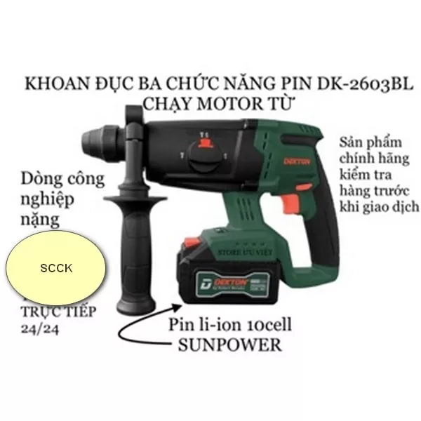 KHOAN ĐỤC, BÊ TÔNG BA CHỨC NĂNG DÙNG PIN DEKTON MODEL: DK-2603BL