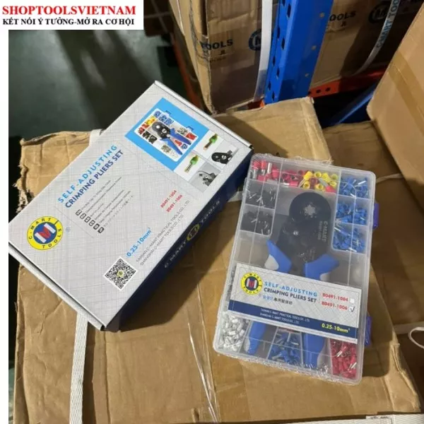 Kìm bấm cos 6 cạnh C-MART B0491-1006 tự điều chỉnh,1200 đầu cos đủ loại cos ống tròn cos pin