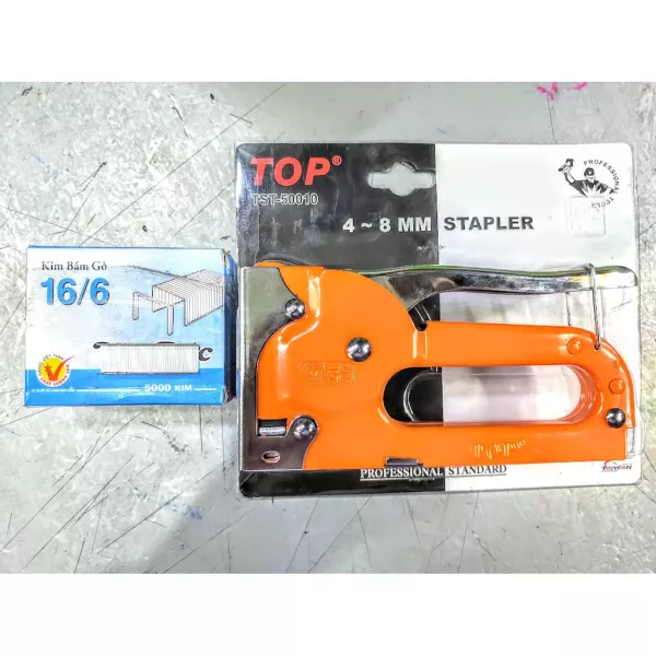 Kìm bấm Đinh Ghim (CAM) TOP có độ sâu đinh bắn vào từ 4mm-8mm và được sản xuất với chất lượng tốt, bên trong được thiết kế với lò xo cứng cáp có thể bấm và hồi một cách nhanh chóng.