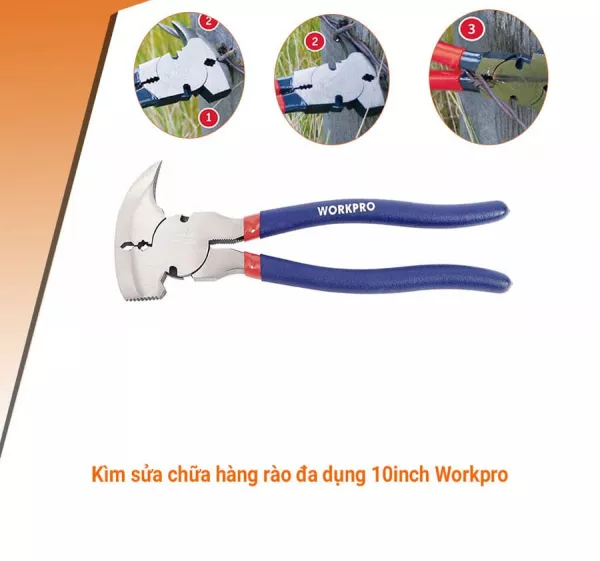 Kìm sửa chữa hàng rào, tuốt, cắt dây thép WORKPRO W031038