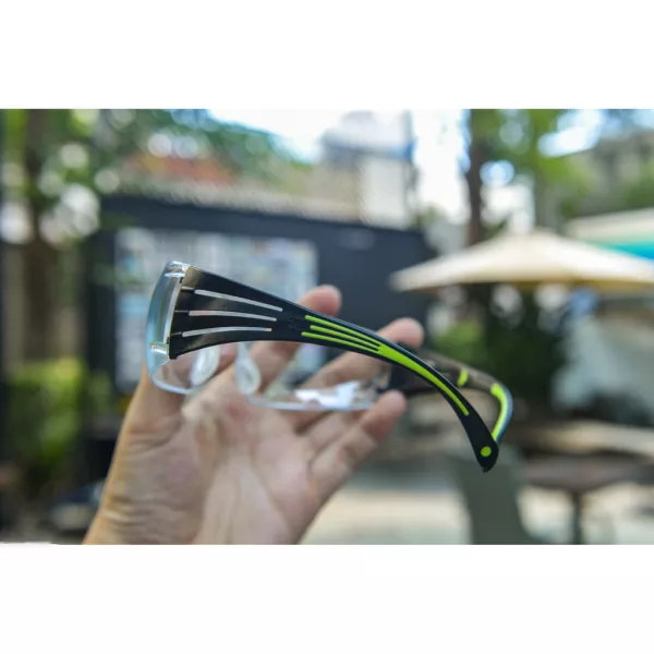 Kính bảo hộ 3M SF401AF được áp dụng công nghệ 3M™ Pressure Diffusion Temple với thiết kế phần gọng có độ đàn hồi cao, ôm khít vào đầu người mang, giảm tình trạng kính bị xê dịch khi đang làm việc. Phần đệm mũi mềm nên không gây cấn lên phần mũi tiếp xúc. Những kính bảo hộ có phần đệm mũi cứng thường sẽ gây khó chịu cho người sử dụng khi đeo kính trong thời gian dài.