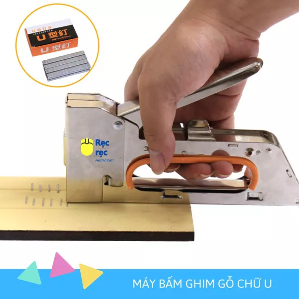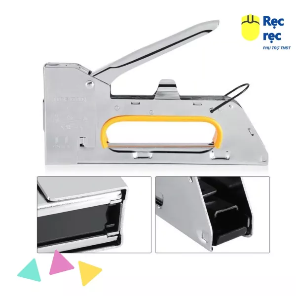 Công dụng: bấm đinh ghim lên gỗ, ván ép, tập, sách, bao bì giấy, nhựa…