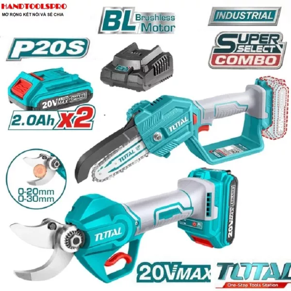 COMBO LÀM VƯỜN MÁY CẮT CÀNH VÀ CƯA XÍCH DÙNG PIN TOTAL TOSLI23012