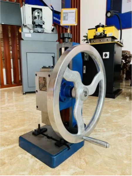 MÁY DẬP BÁNH ĐÀ MÃ MÁY: JA02 - 1.0T XUẤT XỨ: TRUNG QUỐC ĐẶC ĐIỂM CHI TIẾT:- Là dòng sản phẩm sử dụng cơ tay với lực dập lớn, thuận tiện khi cầm dập lỗ, dập sắt, dập tôn hoặc dập inox.- Cơ chế bánh đà quay tay, tạo ra lực dập lớn và dứt khoát lên đến 1000kg.- Sử dụng dễ dàng với 1 người và thuận tiện với không gian hạn chế.- Phù hợp với nhiều nhu cầu và mục đích sử dụng khác nhau.- Trọng lượng máy chắc chắn, hạn chế tình trạng bị xê dịch máy trong quá trình sử dụng.- Máy được đúc nguyên khối từ thép chất lượng cao, không bị gỉ sét và bền bỉ với thời gian. THÔNG SỐ KỸ THUẬT: - LỰC DẬP: 10KN - KÍCH THƯỚC LỖ KHUÔN: 20*35mm - ĐỘ SÂU MIỆNG HẦU: 110mm - ĐỘ CAO KHUÔN LẮP: 70-185mm - HÀNH TRÌNH THANH TRƯỢT: 0-35mm - KÍCH THƯỚC BÀN LÀM VIỆC: 190*210mm - KÍCH THƯỚC MÁY: 240*310*530mm - TRỌNG LƯỢNG MÁY: 48kg