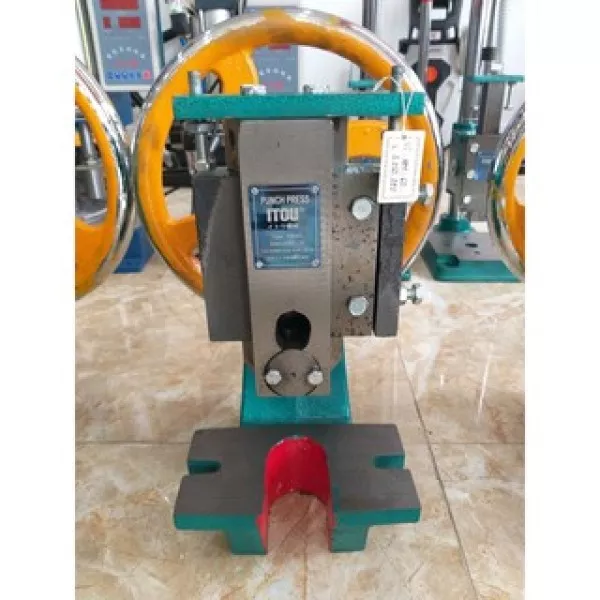 MÁY DẬP BÁNH ĐÀ MINI MÃ MÁY: HM-200 XUẤT XỨ: TRUNG QUỐC ĐẶC ĐIỂM CHI TIẾT: - Là dòng sản phẩm sử dụng cơ tay với lực dập lớn, thuận tiện khi cầm dập lỗ, dập sắt, dập tôn hoặc dập inox. - Cơ chế bánh đà quay tay, tạo ra lực dập lớn và dứt khoát. - Sử dụng dễ dàng với 1 người và thuận tiện với không gian hạn chế. - Phù hợp với nhiều nhu cầu và mục đích sử dụng khác nhau. - Trọng lượng máy chắc chắn, hạn chế tình trạng bị xê dịch máy trong quá trình sử dụng. - Máy được đúc nguyên khối từ thép chất lượng cao, không bị gỉ sét và bền bỉ với thời gian. THÔNG SỐ KỸ THUẬT: - Hành trình thanh trượt: 55 mm - Tốc độ cao đóng: 150 mm - Khoảng cách từ tâm thanh trượt đến tâm máy: 130 mm - Kích thước lỗ khuôn: Φ16 mm - Kích thước bàn làm việc: 150x260 mm - Kích thước máy: 500x415x600 mm
