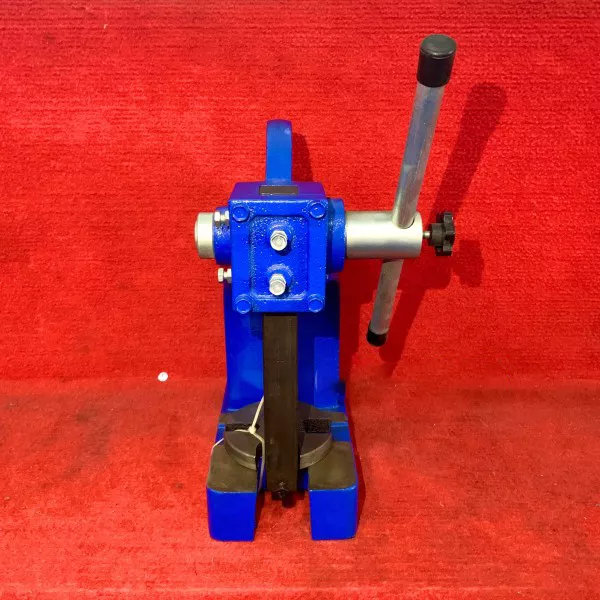 MÁY DẬP GẠT TAY NO.1 THÔNG SỐ KỸ THUẬT: Sức ép: 10 Kích thước giá đỡ(mm):25x25x230 Mặt bàn làm việc(mm): 90 Chiều cao thân máy(mm): 298 Công suất tối đa(mm): 110 Khoảng cách từ giá đỡ đến thân máy(mm): 97 Trọng lượng(kg): 11kg Kích thước máy(cm):25x18x30 Kích thước đóng gói(cm): 29x14x32