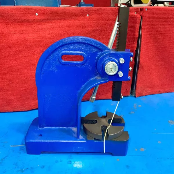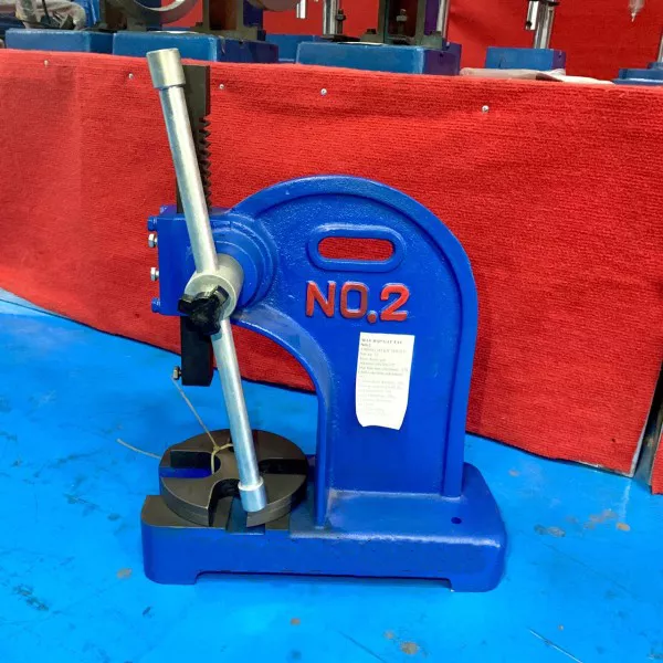 MÁY DẬP GẠT TAY NO.2 THÔNG SỐ KỸ THUẬT: Sức ép: 2 Kích thước giá đỡ(mm):30x30x320 Mặt bàn làm việc(mm): 170 Chiều cao thân máy(mm): 363 Công suất tối đa(mm): 180 Khoảng cách từ giá đỡ đến thân máy(mm): 140 Trọng lượng(kg): 29kg Kích thước máy(cm): 40x24x36 Kích thước đóng gói(cm):43x25x45