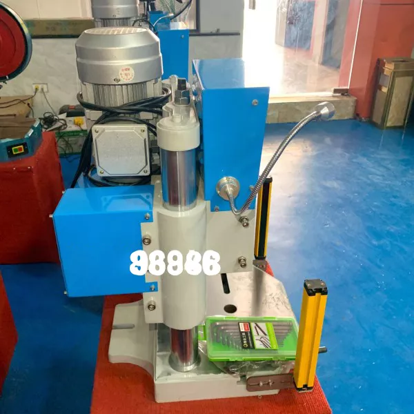 MÁY DẬP MINI TỰ ĐỘNG 2 TẤN Mã: ASD-2T Xuất xứ: Trung Quốc Thông số kĩ thuật: Lực danh nghĩa: 20KN Hành trình thanh trượt: 7.5,15,30mm Chiều cao đóng tối đa: 240mm Khoảng cách trụ: 280mm Đường kính lỗ chuôi: 20mm Kích thước bàn làm việc (trái phải trước và sau): 420 x 360mm Đường kính lỗ bàn làm việc: 30mm Công suất động cơ: 0.75 KW Điện áp: 220v Kích thước: 420 x 360 x 680 mm Trọng lượng máy: 125kg Ghi chú: Hoạt động bằng bàn đạp
