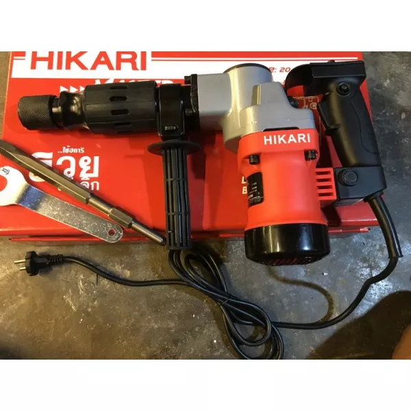 - Máy đục 17 ly HIKARI 1600W có kiểu dáng nhỏ gọn, trọng lượng nhẹ, không chiếm nhiều diện tích khi mang theo sử dụng, cầm thao tác dễ dàng, cũng như giúp bạn có thể bảo quản, cất giữ sản phẩm một cách dễ dàng mà không lo bị hư hỏng, gỉ sét. Tay nắm phụ của máy được thiết kế với kiểu dáng công thái học và cấu khởi động dài có chức năng điều khiển tốc độ biến thiên cùng với tay nắm chính.