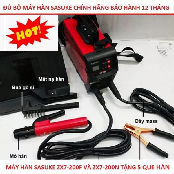 Máy hàn điện tử mini inverter Sasuke mã ZX7-200N ( Đầy đủ phụ kiện, dây hàn, dây mass, mặt nạ)