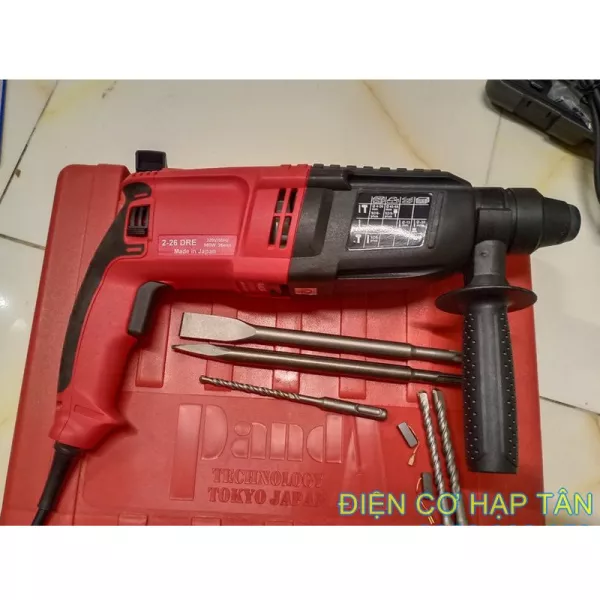 - Máy khoan bê tông PANDA 980W đầy đủ chức năng, gồm 3 chức năng, khoan búa,khoan sắt, vừa khoan vừa búa, đảo chiều, điều chỉnh tốc độ.