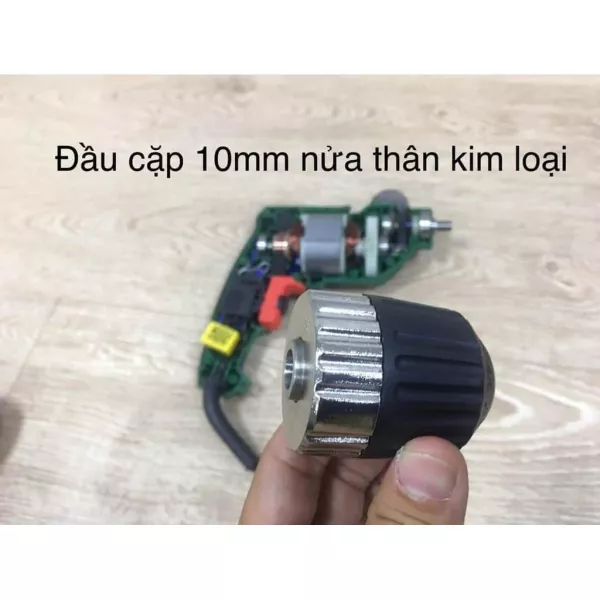 - Máy khoan Dekton DK-ID550 có đầu cặp 10mm nửa thân kim loại chất lượng cao (kim loại thật chứ không phải giả kim loại), phù hợp cho công việc thạch cao, khoan sắt, nhôm kính, bắn vít mái tôn, lắp ráp nội thất, tủ nhựa, và lắp ráp các loại máy móc khác.