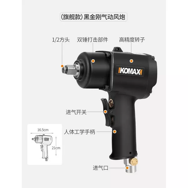 - Máy khoan khí nén KOMAX có thiết kế hình khẩu súng nhỏ gọn, với trọng lượng nhẹ giúp người sử dụng thuận tiện cầm khi thao tác khoan, khởi động bằng cò. Có thể thao tác dễ dàng ngay cả trên cao hay trong góc hẹp.