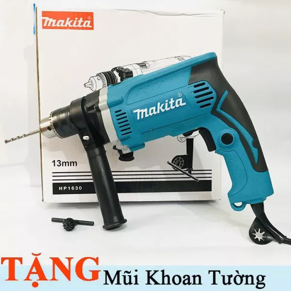 - Máy khoan Makita HP1630 710W đầy đủ chức năng: Khoan búa, khoan sắt, đảo chiều,..