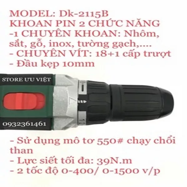 MÁY KHOAN PIN 21v 2 CHỨC NĂNG MODEL Dk-2115B CHÍNH HÃNG DEKTON GIÁ TỐT
