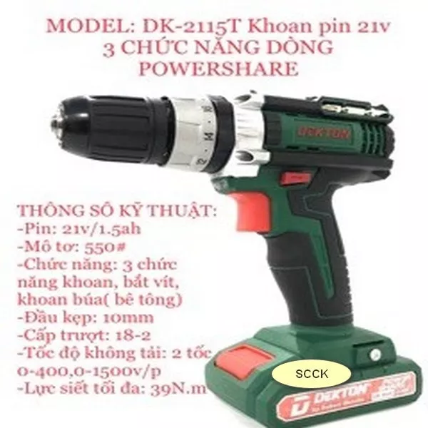 Máy khoan pin 3 chức năng, Model: DK2115T chính hãng Dekton