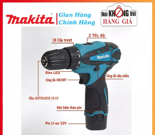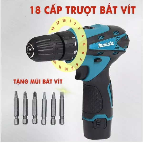 Máy Khoan Pin Makita 12V tăng kèm phụ kiện 25 mũi và ốc [CAM KẾT CHÍNH HÃNG]