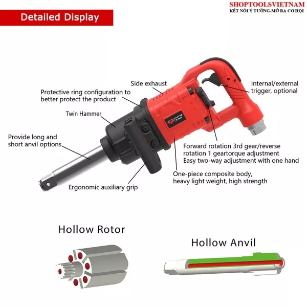 Máy bắn ốc 3/4 inch 2 BÚA lực siết 1.085N.m Kingtony 33621-075 (3/4" DR.Air Impact wrench)